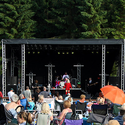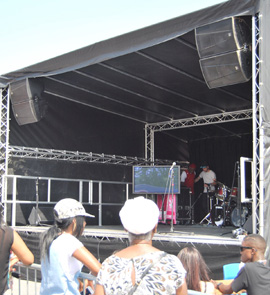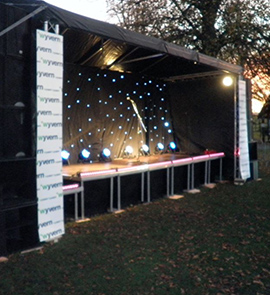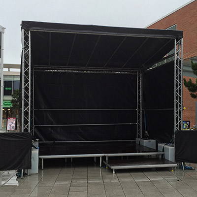 If your event is outside the chances are you’re going to need a covered stage, we can happily supply you with this and all of our stages and covers are completely waterproof. See above for an example of our stage packages.